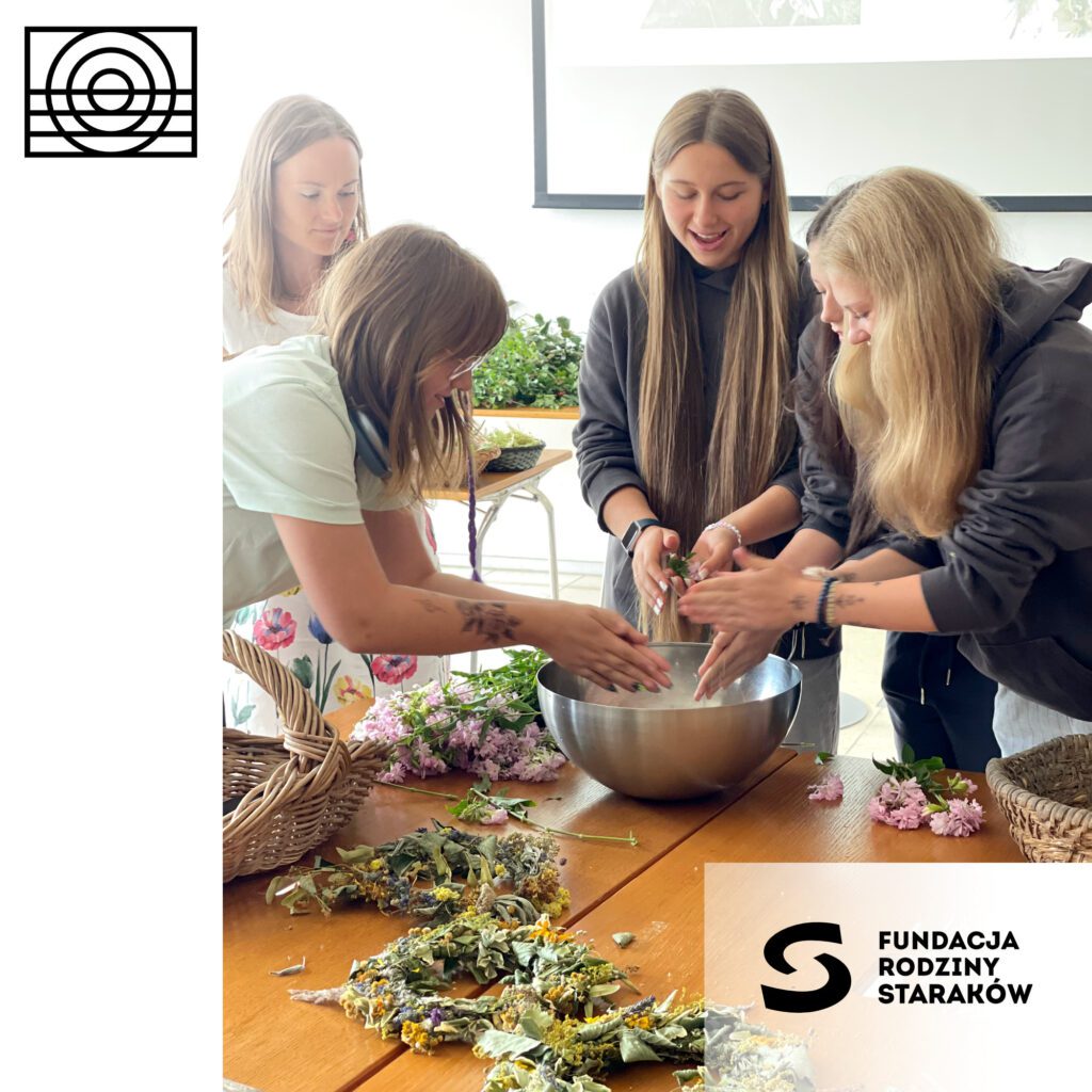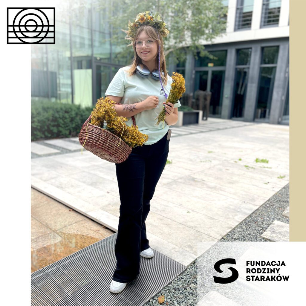 Jako Pani od Ziół z radością wprowadziłam naszych młodych gości w magiczny świat zielarstwa i ziołolecznictwa. Mieliśmy okazję porozmawiać o mocy, jaką skrywają w sobie zioła, o ich właściwościach i zastosowaniach w medycynie. Dla tych, którzy myślą o przyszłości związanej z botaniką, medycyną czy farmacją, była to idealna okazja, by zaczerpnąć inspiracji i poszerzyć swoją wiedzę. Już od progu można było poczuć, że ten dzień będzie wyjątkowy. Przestrzeń, w której odbywały się warsztaty, była wręcz nasycona zapachem mięty, lawendy i rumianku – to wszystko stworzyło niesamowitą atmosferę, która sprzyjała rozmowom i wymianie doświadczeń.
